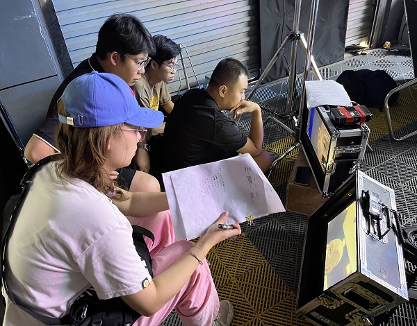 (為了確保拍攝工作的有序進行,通常需要拍攝團隊在拍攝過程中時刻對拍攝素材進行檢查,并就事先制定的分鏡腳本等文件進行查看,以便保證拍攝素材的可用性,圖中就是攝影師們正在檢查素材畫面。)