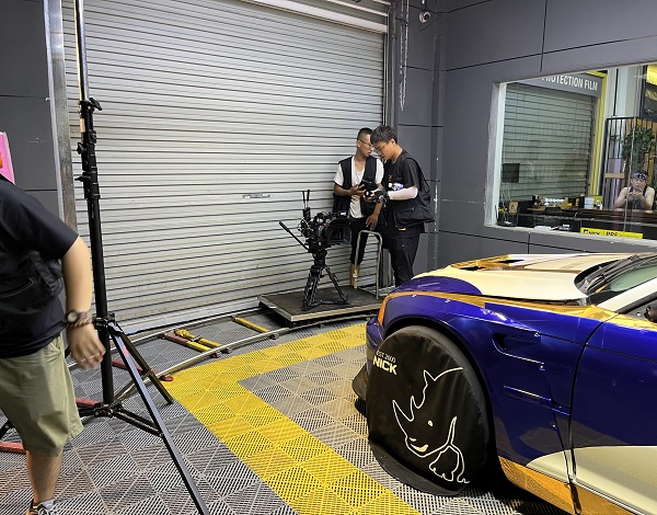 (在實機拍攝過程中,為了保證攝影器材在運動過程中的穩定性,通常需要用到軌道車的幫助,圖中就是攝影師們正在使用根據拍攝場地情況搭建出的簡易軌道車。)